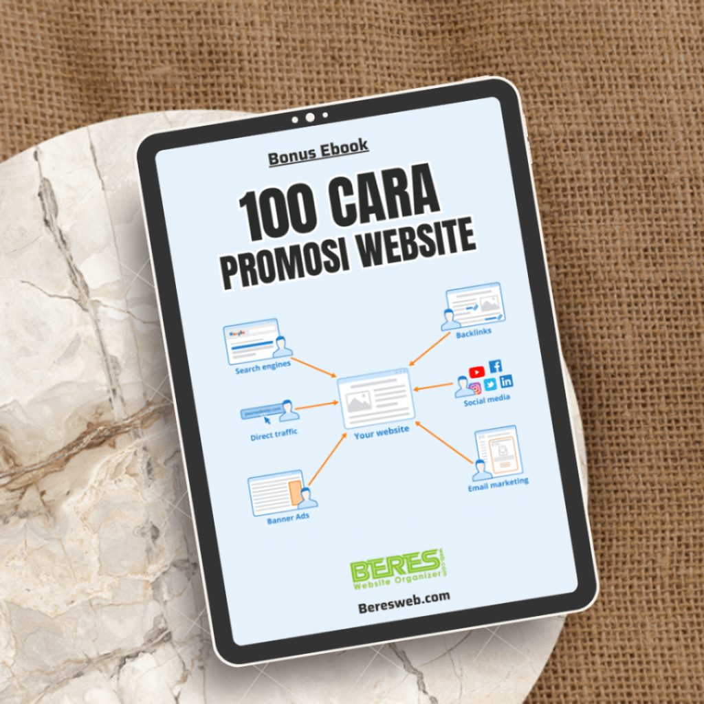 Dalam era digital yang serba cepat saat ini, mempromosikan website Anda secara efektif merupakan langkah yang krusial dalam membangun kehadiran online yang sukses. Di Beresweb.com, kami memahami bahwa banyak pemilik bisnis yang mungkin kesulitan menavigasi dunia pemasaran online yang kompleks. Oleh karena itu, kami menyediakan Bonus Gratis berupa eBook “100 Cara Promosi Website” kepada pelanggan kami. Mengapa eBook “100 Cara Promosi Website” Penting? Pengetahuan yang Komprehensif: eBook “100 Cara Promosi Website” memberikan panduan yang komprehensif tentang berbagai strategi promosi yang dapat Anda gunakan untuk meningkatkan visibilitas dan lalu lintas situs web Anda. Dari pemasaran konten hingga SEO, media sosial, dan kampanye iklan berbayar, eBook ini mencakup berbagai aspek pemasaran digital. Ide Kreatif: Dalam dunia yang terus berubah dan berkembang pesat, ide kreatif seringkali menjadi kunci kesuksesan dalam pemasaran online. eBook “100 Cara Promosi Website” memberikan inspirasi dan ide-ide segar tentang cara mempromosikan situs web Anda dengan cara yang unik dan menarik. Panduan Langkah demi Langkah: eBook ini tidak hanya memberikan ide-ide umum, tetapi juga memberikan panduan langkah demi langkah tentang cara menerapkan strategi-strategi tersebut. Mulai dari perencanaan hingga pelaksanaan dan analisis hasil, eBook ini akan membantu Anda memahami proses yang terlibat dalam mempromosikan situs web Anda. Referensi yang Berguna: Dengan menyajikan 100 cara promosi yang berbeda, eBook ini menjadi referensi yang berguna untuk pemilik bisnis dan pemasar digital. Anda dapat menggunakannya sebagai sumber inspirasi dan panduan saat merencanakan strategi pemasaran Anda. Bonus Gratis “100 Cara Promosi Website” dari Beresweb.com: eBook “100 Cara Promosi Website” adalah tambahan berharga bagi setiap pelanggan Beresweb.com. Sebagai bagian dari komitmen kami untuk memberikan nilai tambah kepada pelanggan kami, kami menyediakan eBook ini secara gratis kepada mereka yang memilih layanan kami. Inilah yang membuat Beresweb.com menjadi pilihan yang tepat bagi mereka yang ingin mengembangkan kehadiran online mereka dengan cara yang efektif. Kami percaya bahwa memiliki pengetahuan dan sumber daya yang tepat adalah kunci kesuksesan dalam pemasaran digital. Dengan Bonus Gratis “100 Cara Promosi Website” dari Beresweb.com, Anda dapat memperoleh wawasan yang berharga dan mengambil langkah konkret untuk meningkatkan visibilitas dan kinerja situs web Anda. Jika Anda siap untuk mengambil langkah selanjutnya dalam mempromosikan situs web Anda dan mengembangkan kehadiran online Anda, hubungi Beresweb.com sekarang. Dengan layanan berkualitas tinggi dan bonus yang berharga seperti eBook “100 Cara Promosi Website”, kami siap membantu Anda mencapai tujuan pemasaran online Anda. Segera hubungi kami dan mulailah perjalanan Anda menuju kesuksesan online!