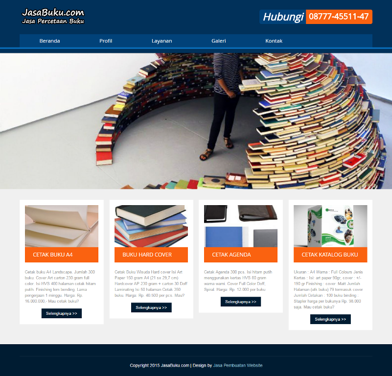 JasaBuku.com adalah perusahaan percetakan buku yang menyediakan solusi percetakan dan mencoba menjembatani antara kebutuhan klien untuk mendapatkan pelayanan dan kualitas terbaik dengan harga yang sangat terjangkau.